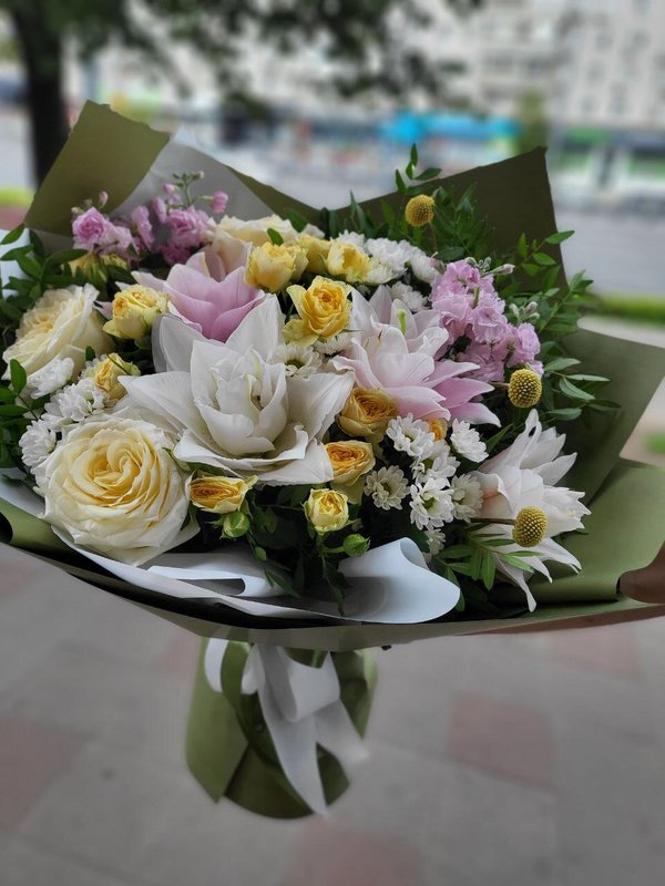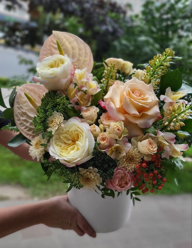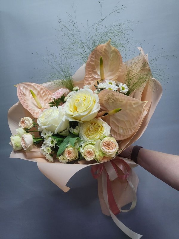 В магазине представлены разнообразные букеты и цветочные композиции на любой повод, подарки.